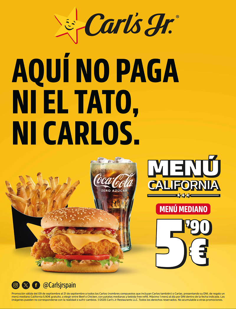 Como parte de la activación, la compañía ha lanzado una acción promocional: entre el 12 y el 21 de septiembre, todos los clientes llamados Carlos pueden obtener gratuitamente un Menú Mediano California en cualquiera de los más de 40 establecimientos de la cadena en España identificándose con su DNI. Durante el mismo periodo, todos los empleados de la compañía portarán una chapa con el nombre de Carlos como guiño a la campaña.
