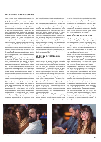 25Credibilidad e identificaciónAnna R. Costa, que ha trabajado en la creación, producción, dirección y guionización de series como Fácil o Arde Madrid, apuntó que la integración de las marcas en los contenidos aporta dos cosas: credibilidad a la historia e identificación con el espectador. “Si creo que la marca está dentro de la historia, dentro de la vida del personaje, el contacto con ella se tiene que hacer previamente a la escritura para ver si están interesados. El público se va a identificar enseguida con una situación cotidiana de ese personaje porque consume la misma marca que consume la mayoría de la gente. Si no se ha llegado a un acuerdo, se pasa a hacer un cover de la marca [producto inexistente], perdiendo ese vínculo de identificación que queremos con el espectador. Por ejemplo, en Arde Madrid, donde el ámbito era cool, necesitábamos marcas de lujo porque la película estaba vinculada a una estrella de Hollywood [Ava Gardner]. Tuvimos que hacer esa negociación previa [con Bulgari, que cedió un collar que iba custodiado por dos guardaespaldas constantemente], incluso antes del rodaje, porque se necesitaba sí o sí para que fuese creíble”.Paloma Rando, guionista y columnista de la sección de televisión del diario El País, cree que la relación entre series y publicidad “a lo largo de los últimos años ha cambiado mucho, desde que Globomedia comenzó a incluir el tetrabrik de Puleva en los desayunos”. En aquel entonces, recordó, incluso había un encargado de product placement. “Y el product placement en ese caso, no solía partir de los guiones, sino al revés. Era una inclusión muy forzada. Además, la ficción española era muy poco identitaria, ocurría en ciudades que no sabíamos cuáles eran. Todo el mundo sabía que era Madrid, pero no se mencionaba a Madrid. Entonces nada tenía identidad. Ahora sí que se ha ido aterrizando más”.Volviendo la vista atrás, Rando mencionó a Álex Pina, creador de La Casa de Papel, que “cuando todavía estaba en Globomedia, hizo una serie que se llamaba El Barco, en la que hubo un capítulo que giraba alrededor de la última lata de Coca-Cola en un mundo en extinción, donde la marca evidentemente estaba integrada en la trama. Tenía todo el sentido que los personajes, que estaban en el fin del mundo, se encontraran una lata de Coca-Cola y tuvieran que decidir qué hacer con ella. Es un ejemplo que muestra bien cómo ha ido evolucionando”.Una de sus últimas creaciones es Mariliendre [comedia musical que estrena Atresplayer el 27 de abril] en cuya trama aparece una app de citas entre hombres gais. “Evidentemente la primera que a nosotros nos vino a la cabeza fue Grinder. No es la que está en la serie, pero está otra app real. No hemos tenido que hacer un cover. Preferimos que sean marcas reales porque tienen un vínculo con el espectador y no te sacan de la historia. Estamos hartos de ver a gente buscando en un Google que no es Google”, contó.Álvaro Rei, cofundador y presidente creativo de Ballet, agencia que desde 2018 reúne a un equipo de escritores, creativos, filósofos y estrategas y que trabajan muy de la mano de marcas, plataformas, guionistas y creadores de contenido, hizo un paralelismo entre las series y las marcas. “Estas tienen que saber hacer, al igual que lo hacen las primeras, buscar su diferencia y atreverse a contarla. Hoy en día hay mucho miedo a destacar, lo que es muy paradójico, porque, como dicen en Japón, el clavo que sobresale es el que más golpes se lleva”.Lo que el espectador no perdonaPara el directivo de Hijos de Rivera, el espectador no perdona el cambio de código. “Si haces un cambio de código, como marca estás muerto. No puedes irte a un código más publicitario cuando estás en entretenimiento”. Y volviendo a La Casa de Papel, puso como ejemplo otra acción de Estrella Galicia para la última temporada, una acción “arriesgada, que al creador y a Netflix les costó digerir pero logramos convencerles para hacerla”. “Queríamos hacer un final paralelo con nuestro código de humor, en el que el oro acababa en nuestra y hacíamos cerveza con él. Luego regalamos esa edición a todos los fans de la serie que llamaban a un call center. Fue un éxito absoluto. Nos arriesgamos y lo que hicimos fue generar más contenido. Y resultó un éxito, pero un éxito para todos. Nosotros tenemos también una comunidad muy fuerte, y lo que hicimos fue combinar dos comunidades que al final consiguieron hacer el contenido más grande.”Paloma Rando añadió que “el público es muy agradecido y perdona casi todo, pero creo que lleva mal sentirse utilizado. Si en la historia, las diferentes marcas y productos están integrados, no es un problema. En el momento en el que tú como espectador notas inconscientemente que lo que importa no es la historia que te están contando, sino que esa historia está sirviendo de soporte para una marca que te están intentando colocar. Es como una traición al pacto que el espectador ha hecho con esa serie, porque el espectador se ha sentado delante de la tele para que le cuenten una historia, no para que le vendan algo. Es una fina línea hay que cuidarla”.Campañas de lanzamientoSobre las campañas y estrategias de lanzamiento de las series, Anna R. Costa, afirmó que Movistar Plus + es la única plataforma que deja a los creadores involucrarse en la imagen de marca de la serie. “Para mí es un lujazo, porque la creatividad de la imagen de marca y la creación de la serie desde la escritura es lo mismo. No sé qué me pasará el día que llegue a una plataforma y no me dejen colaborar en ese proceso. Creo que voy a montar un pollo [risas]\Rei, que se ha encargado de muchas campañas de series, señaló que aunque leen los guiones antes de ponerse con la campaña, tienen que entender a los creadores, a los que llamó artistas. “Los artistas siempre tienen un conflicto detrás. Y ese conflicto no se aloja solo