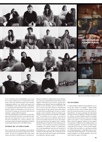35ba en el territorio de la sostenibilidad y que es uno de los tantos atributos que en comunicación trabajamos. Vemos que podemos ayudar a otros clientes, competencia directa o no, dentro del campo de la sostenibilidad, ya que tenemos mucho conocimiento y experiencia que aportar. De hecho, estamos empezado a hablar con Ecoembes y creo que eso es a raíz de todo el trabajo que se ha hecho dentro de este territorio”, apunta el director general.Otro tema que pierden es su binomio con Revuelta, agencia de Jesús Revuelta junto con quien han trabajado todo este tiempo para la marca. “Era una colaboración consolidada que, a priori, perdemos, pero en nuestra cabeza está seguir trabajando con Revuelta para algún cliente nuevo”, dice Bitan Franco.Estado de la publicidadPara su forma de ver, los fundadores de la agencia creen que el sector no está en su mejor forma ni momento. “El nivel de la publicidad del sector ahora mismo está mejor en LinkedIn que en un bloque publicitario real de tele”, reflexionan los socios de Mono que creen que la publicidad que ellos firman aporta agilidad. “Intentamos que sea fresco, popular, pero también que sea distinto. Que esté equilibrado. Algo puede ser muy novedoso, pero no entenderse. Lo que es cierto es que ahora mismo la comunicación está muy plana. No hay censura, pero sí hay miedo, se cuida mucho lo políticamente correcto y se quiere agradar a todo el mundo”, dicen los creativos, que confían en que el humor esté volviendo a la publicidad. “Lo surrealista ya no se valora. Y ¿por qué? Se pueden contar cosas sin ser explícitos. Parece que las marcas han perdido el punto de evocar. Da la impresión de que ahora hay que explicar todo”, comenta Sito Morillo que cree que todo “se ha vuelto más conservador y, como creativos, nos afecta y terminamos contagiados. Los clientes tienden a lo tradicional y eso se está expandiendo como una ola. Recuerdo la publicidad que se veía cuando éramos pequeños: anuncios de Mercedes Benz, Ikea o Renault, increíbles. Todo se ha vuelto más racional, más manifiesto, más explicativo. Hay poca magia”.Un milagroLa oficina de Mono Madrid está presidida por un cartel que dice “Mono es un milagro”. “Hemos tenido una parte de suerte y otra de mucho esfuerzo y trabajo. Nos hemos posicionado en seis años siendo independientes, sin apoyo económico de nadie detrás más que los socios, y llegando a clientes muy potentes. Además, no hemos bajado la guardia con ningún cliente desde el día que abrimos. Nunca nos ha dado igual lo que saliera o cómo resolviéramos un brief. Hay un nivel de exigencia altísimo en esta agencia y da igual que el cliente sea una multinacional o un anunciante pequeñito”. El discurso de Jorge Fesser es apoyado por los creativos. “No nos hemos engañado. Hemos sido muy fieles a lo que hemos querido hacer desde el principio”, añade Bitan Franco, mientras que Sito Morillo apunta que “en momentos puntuales trabajamos con clientes grandes y fue lo que abrió la puerta a jugar en otra liga”.Algunos de los trabajos realizados en 2024