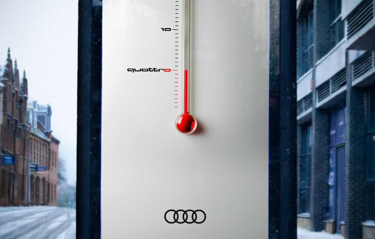 Con la llegada del invierno y el descenso de las temperaturas en Reino Unido, Audi ha puesto en marcha una campaña que marca el inicio de lo que la marca denomina Quattro season (o la temporada de Quatro, que es la denominación que recibe la tracción a las cuatro ruedas de la marca). Utiliza la meteorología como detonante creativo para poner en valor su tecnología de tracción total, diseñada para ofrecer control y confianza a los conductores frente a las condiciones adversas.
