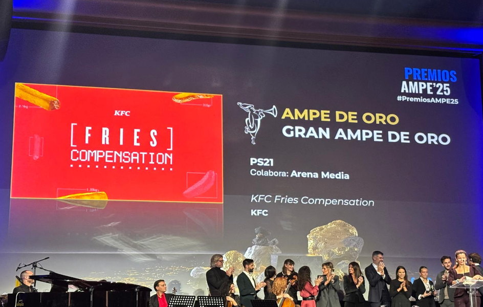 KFC Fries Compensation, la acción desarrollada por PS21 con la colaboración de Arena Media para la marca de restauración KFC, se hizo anoche con el Gran Ampe de Oro, en la edición en la que han regresado estos galardones, tras varios años sin otorgarse. La entrega de este premio sirvió una de las anécdotas de la gala, al emitirse en su lugar por error el caso de El Juego del Calamar.