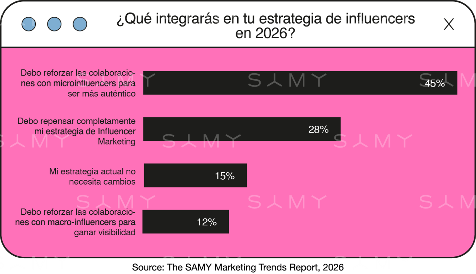 Según el informe, el 48% de los marketers aumentará su inversión en influencer marketing en 2026. Los microinfluencers se consolidan como la principal apuesta, especialmente en formatos como live shopping y short video en TikTok Shop. El marketing de influencia evoluciona hacia relaciones sostenidas y culturalmente relevantes, alejándose de colaboraciones transaccionales.