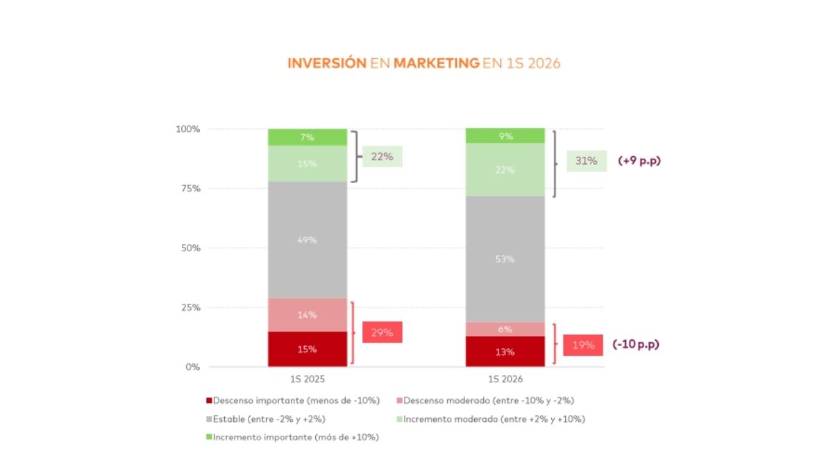 Y, por tanto, en las expectativas de crecimiento de la inversión apuntadas en esta oleada del informe. “Los datos de cierre de inversión 2025 en marketing y publicidad y las expectativas de los profesionales para el primer semestre de 2026 nos trasladan una visión optimista y de crecimiento”, señalan. Una conclusión que emana del encadenamiento de dos oleadas de cifras positivas con una variación de crecimientos del 0,5% y 0,2% en las inversiones en marketing, y de 0,1% y 0,5% para publicidad, y que rompían la dinámica anterior y que reportaban caídas de las inversiones tanto en el cierre de 2024, como en el arranque de 2025.