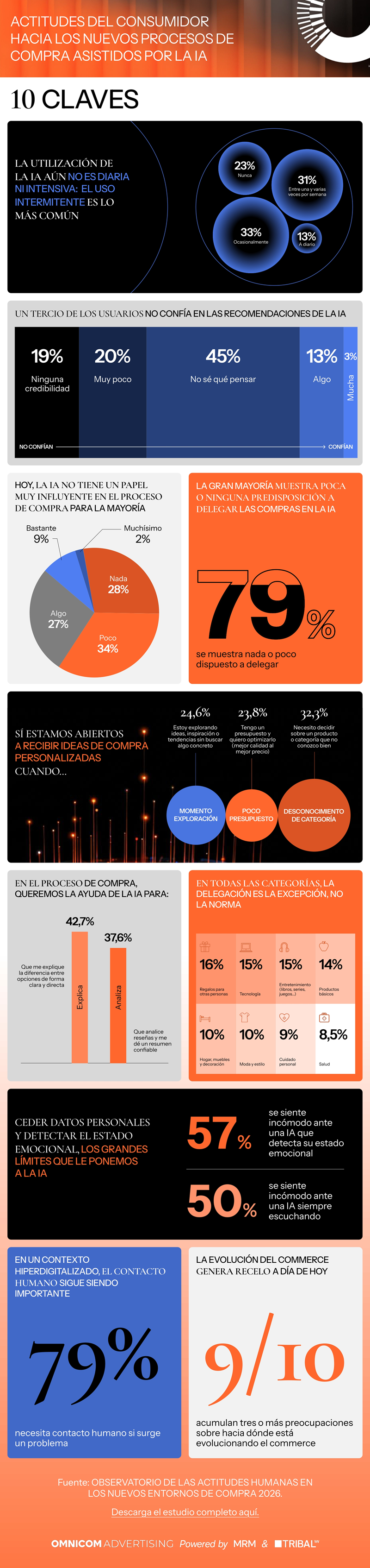 MRM y Tribal Spain, agencias integradas en Omnicom Advertising, han presentado el “Primer Observatorio de las actitudes humanas en los nuevos entornos de compra”, un informe que examina cómo los consumidores españoles se relacionan con la inteligencia artificial en el proceso de compra.