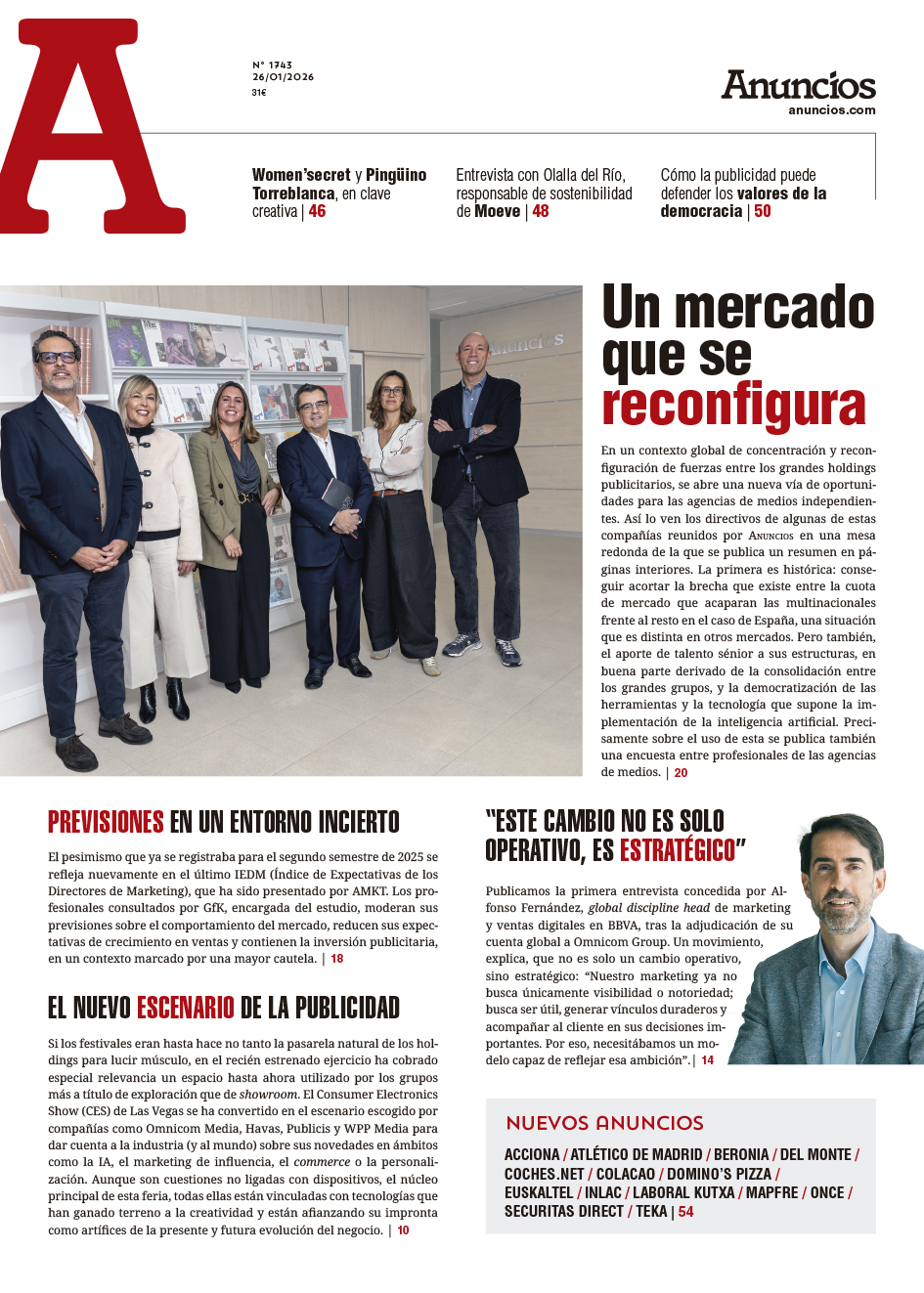 La primera es histórica: conseguir acortar la brecha que existe entre la cuota de mercado que acaparan las multinacionales frente al resto en el caso de España, una situación que es distinta en otros mercados. Pero también, el aporte de talento sénior a sus estructuras, en buena parte derivado de la consolidación entre los grandes grupos, y la democratización de las herramientas y la tecnología que supone la implementación de la inteligencia artificial. Precisamente sobre el uso de esta se publica también una encuesta entre profesionales de las agencias de medios. También en esta edición, entre otros contenidos: